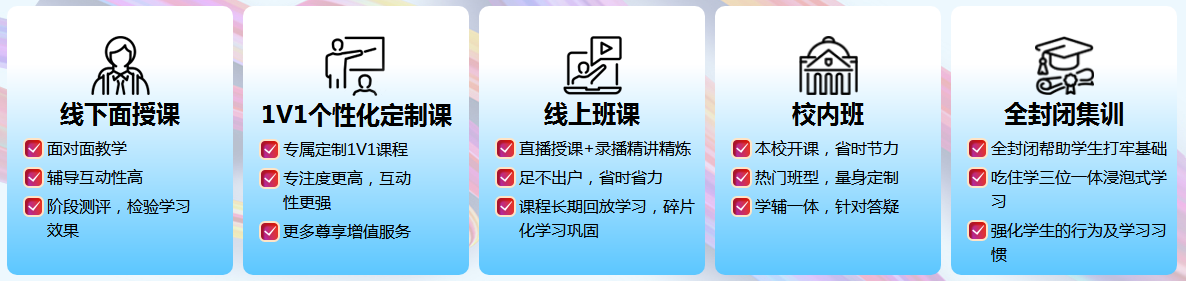 大型专属封闭培训基地,全日制包住宿,浸泡式学习。